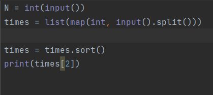 sort()는 리턴값이 없는데 times = times.sort()로 받으려해서 오류가 난 것이다.