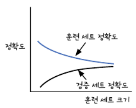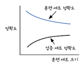 - 과대적합이란 모델이 훈련세트에서는 좋은 성능을 내지만 검증 세트에서는 낮은 성능을 내는 경우이다.