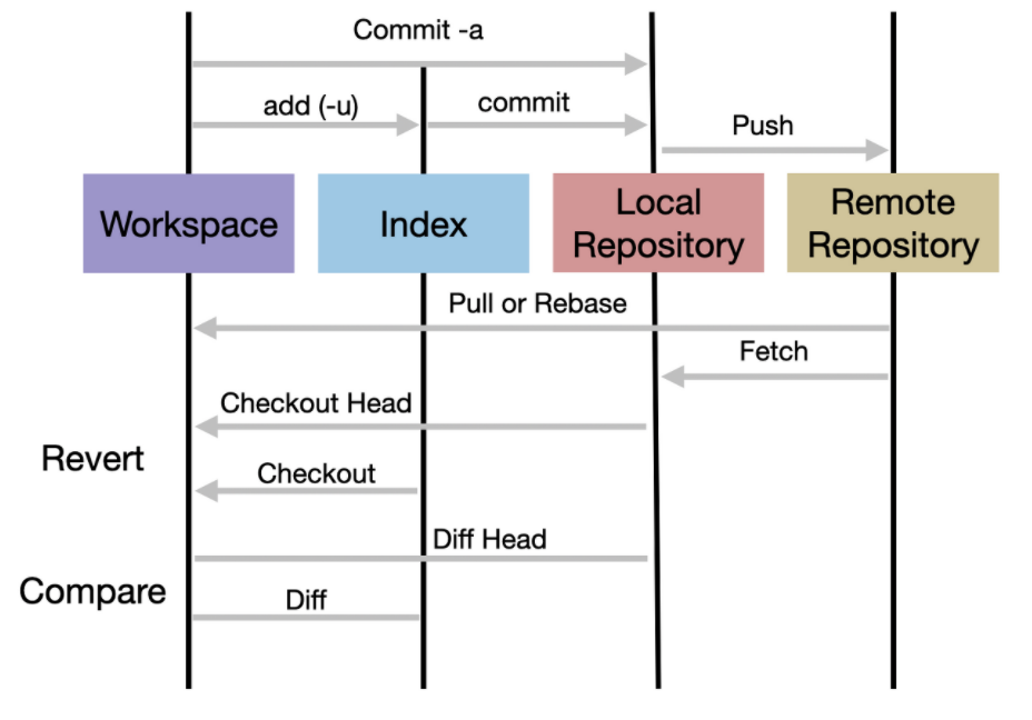 - 원격(Remote) 저장소 : 원격 저장소는 원격 서버에 저장되고 관리되는 저장소이며, 로컬 저장소의 파일들을 원격 저장소에 push할 수 있다.