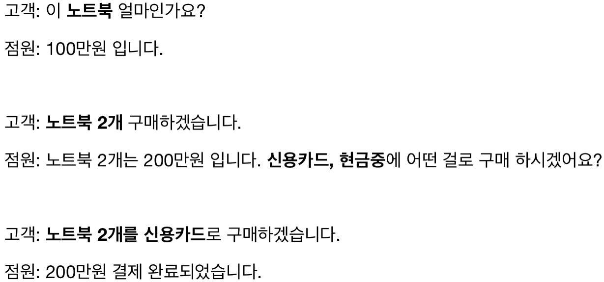 점원은 이전에 고객이 말한 내용을 기억하고 있지 않는다.