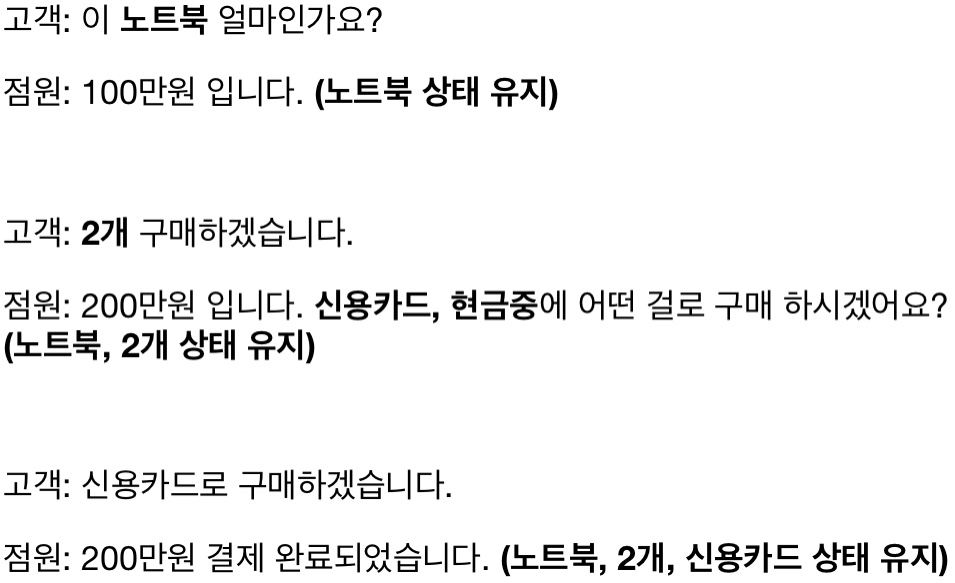 점원이 이전에 고객이 말한 내용을 기억하고 있는다.